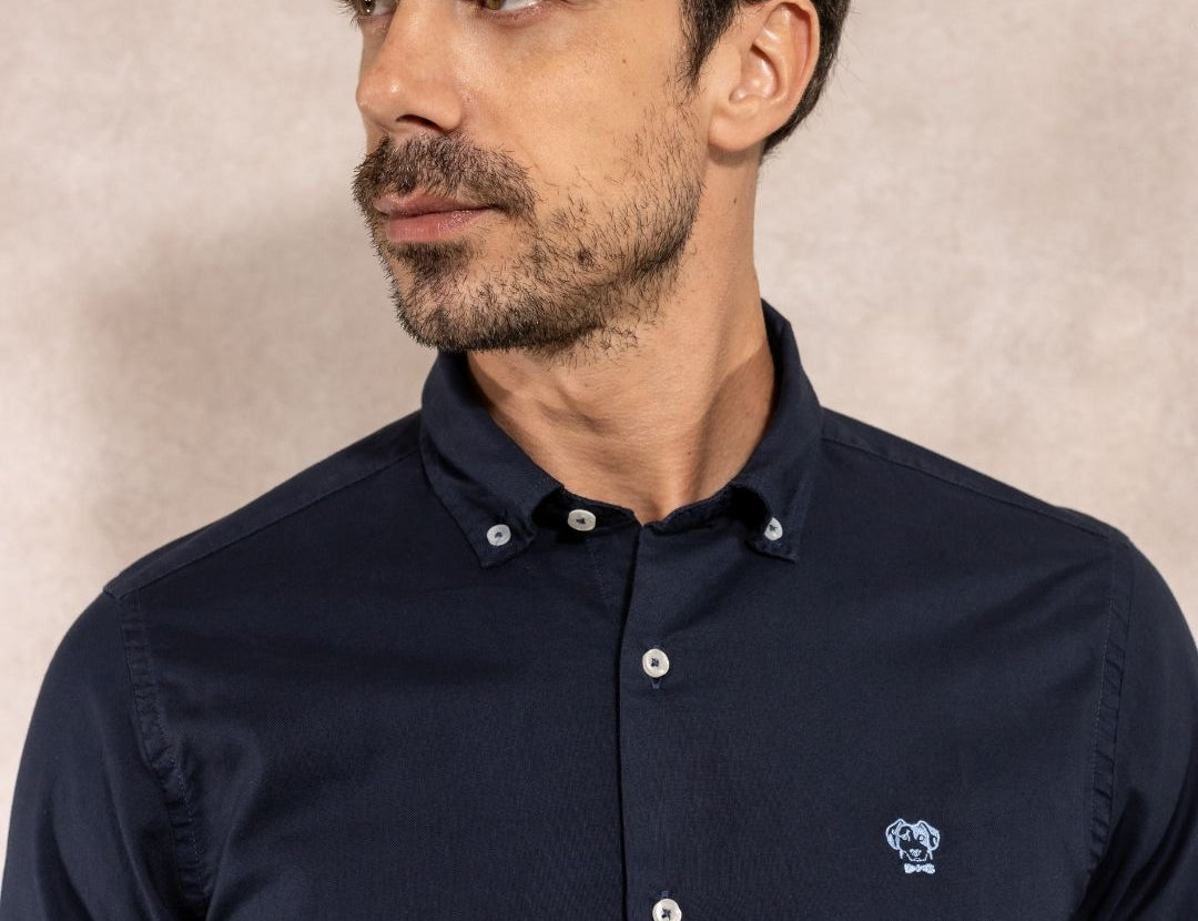 Camisa Antimanchas Popelina Cuadros Azul Oscuro Berna