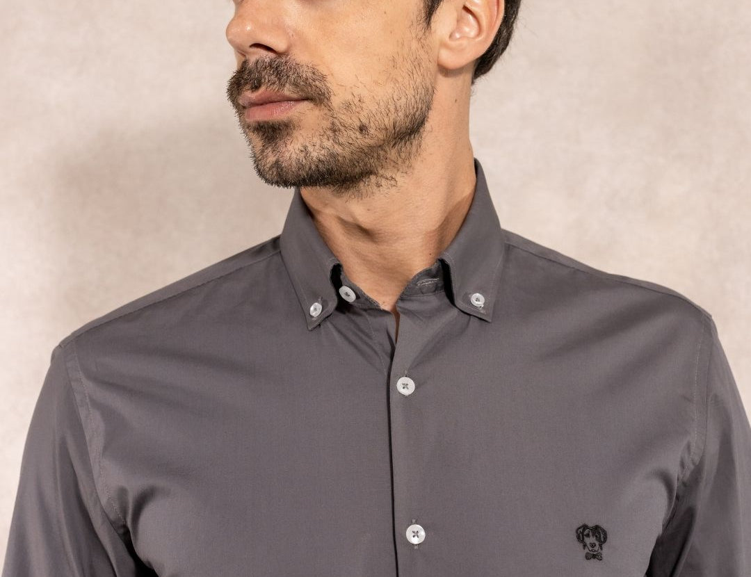 Camisa Antimanchas Popelina Gris Oscuro - Talla Regular