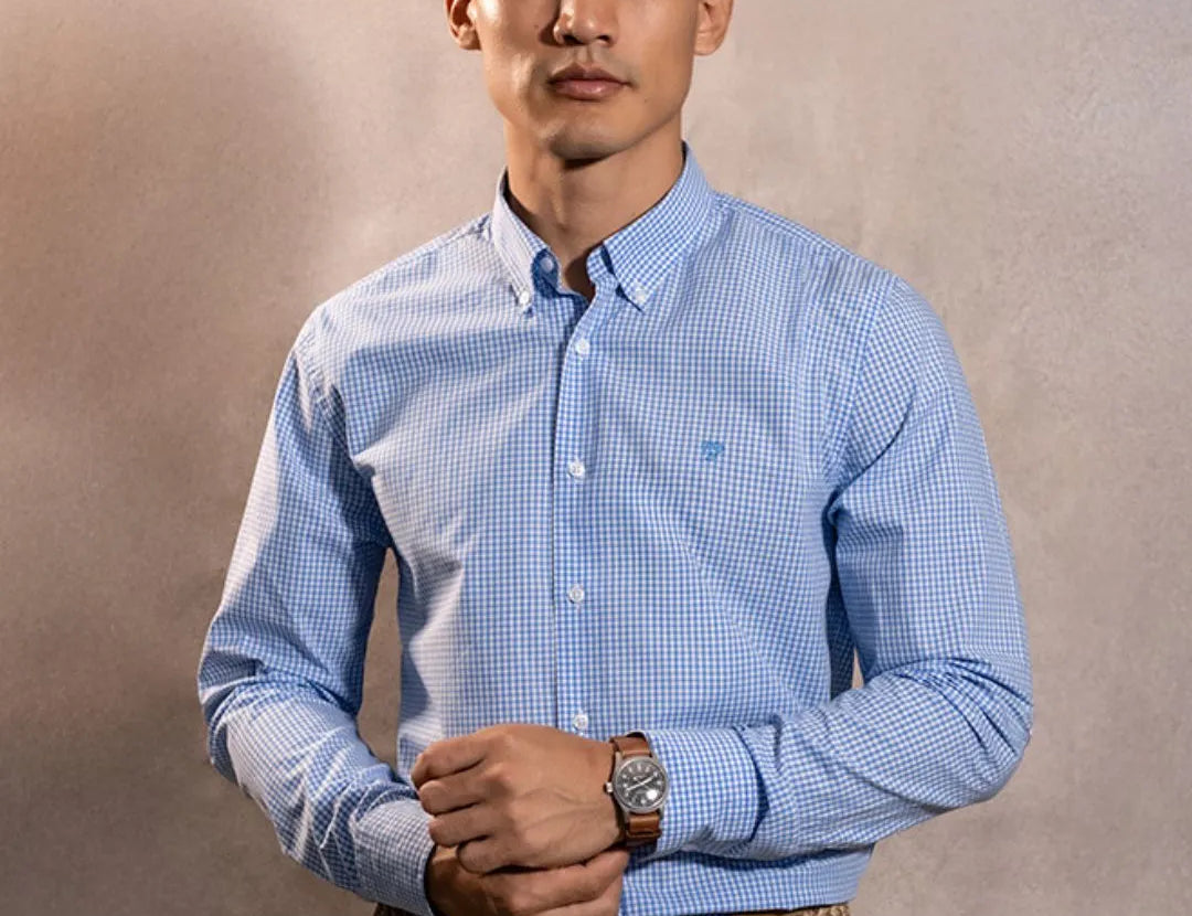 Camisa Performance Antiarrugas Cuadros Textura Azul claro