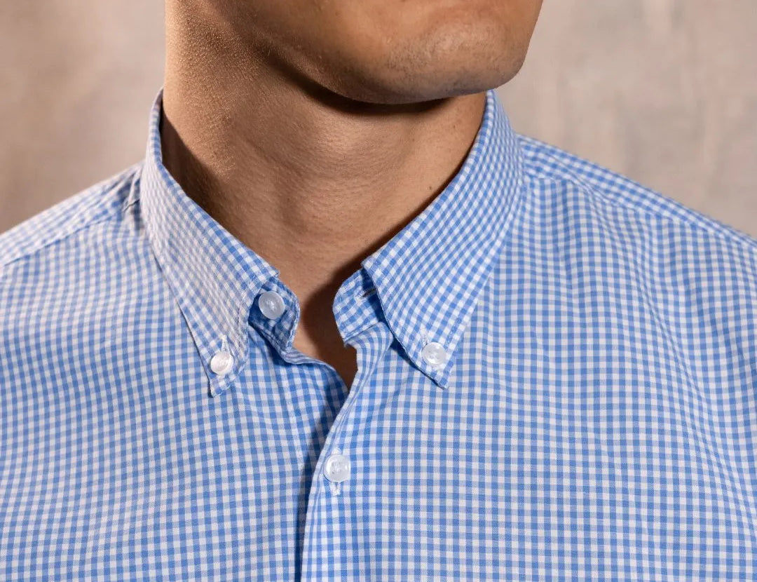 Camisa Antimanchas Popelina Cuadros Azul Claro Logo Combinado