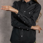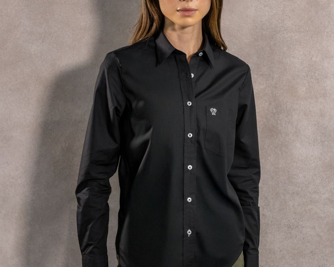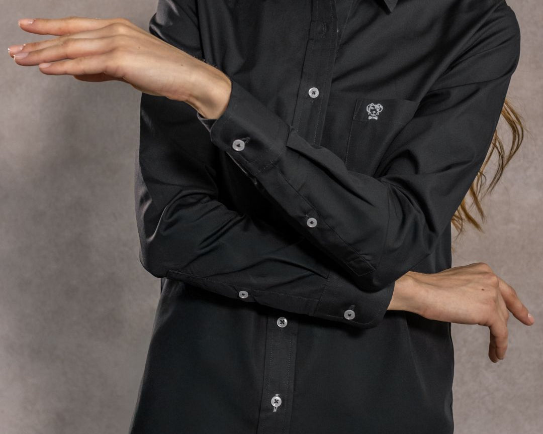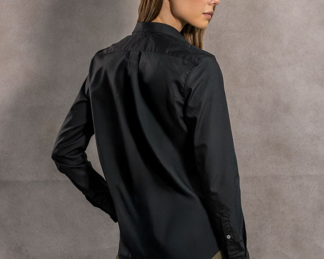 Camisa Antimanchas Negra con Bolsillo Popelina – Mujer