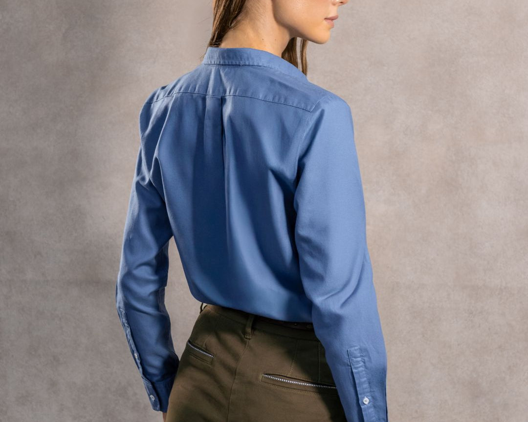 Una camisa de mujer con el porte tradicional del Oxford, pero con la tecnología que exige la vida moderna. Perfecta para quien viste con elegancia sin renunciar a la comodidad.
