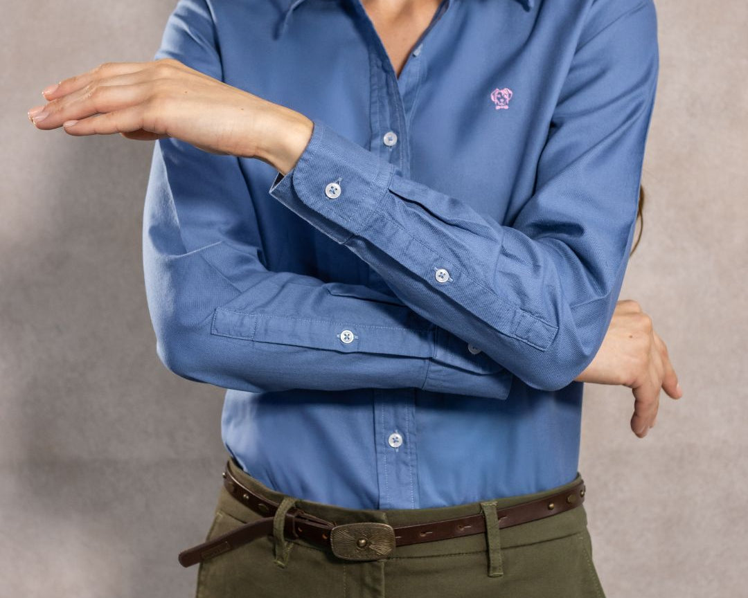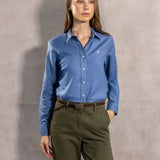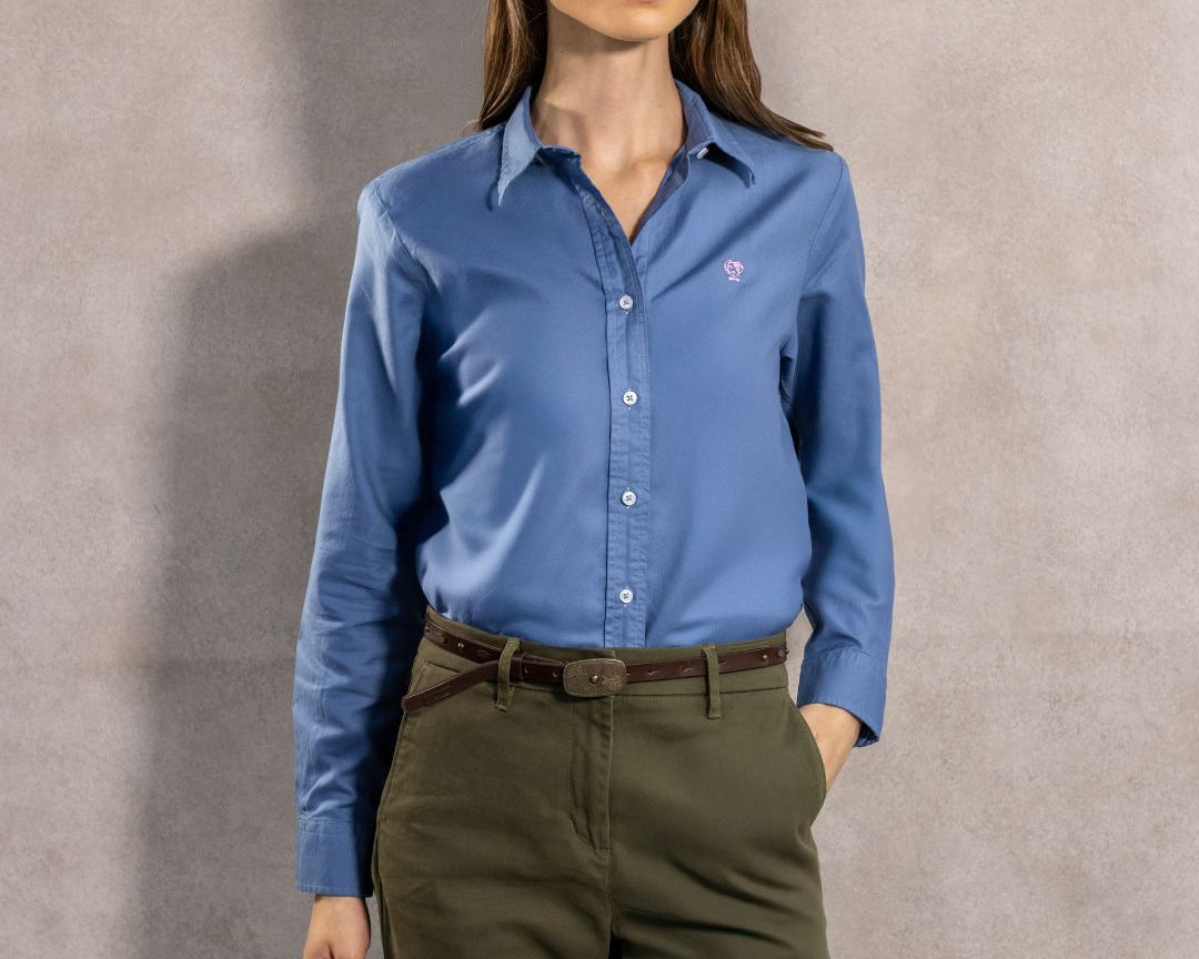 Camisa Antimanchas Oxford Azul Chino – Mujer