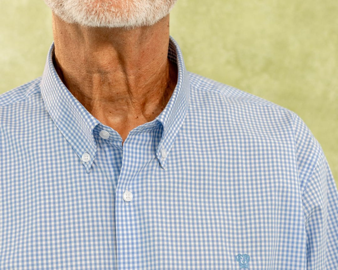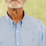 Camisa Antimanchas Popelina Cuadros Azul Claro Logo Combinado