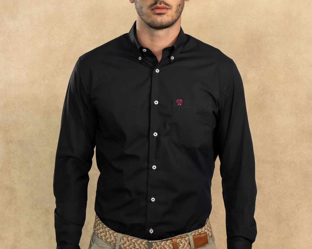 Camisa Antimanchas Popelina Negro con Bolsillo Logo Burgundy - Talla Regular