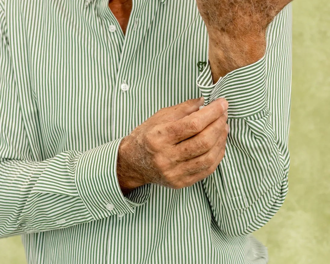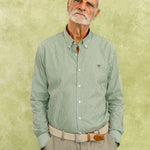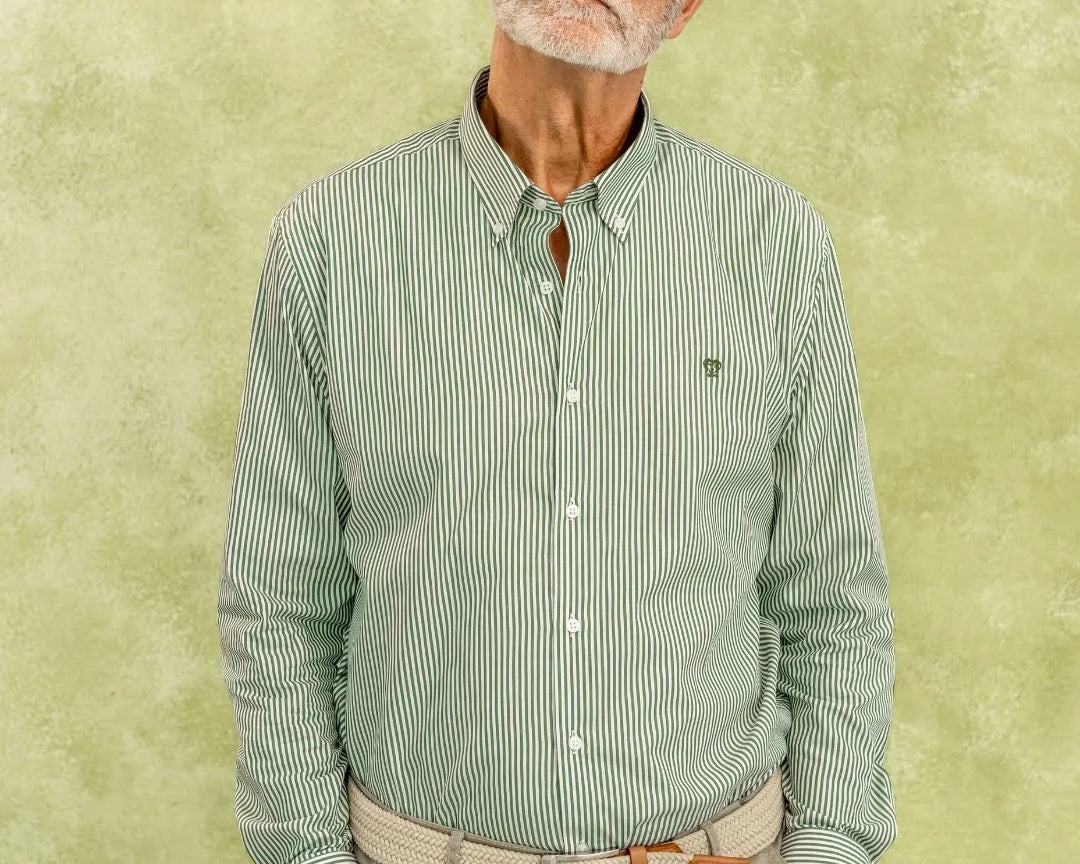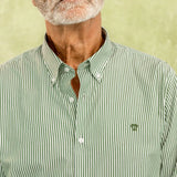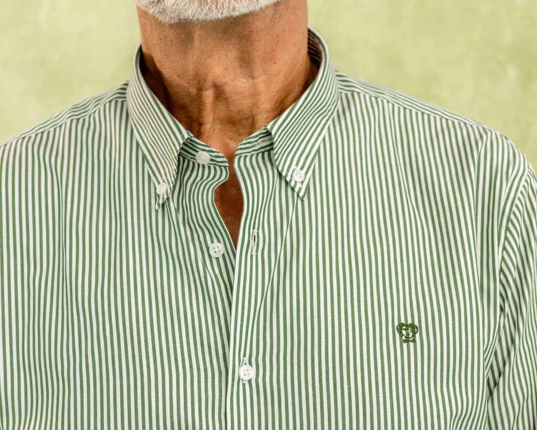 Camisa Antimanchas Popelina Rayas Verde Oscuro Logo Combinado