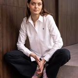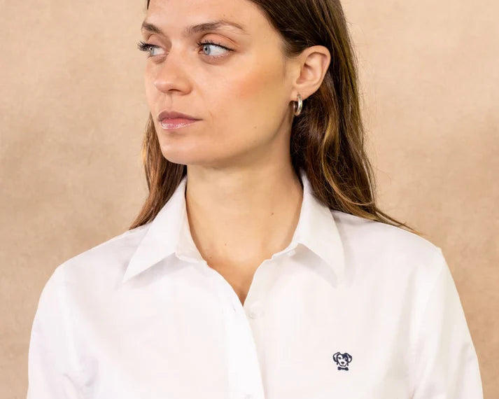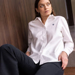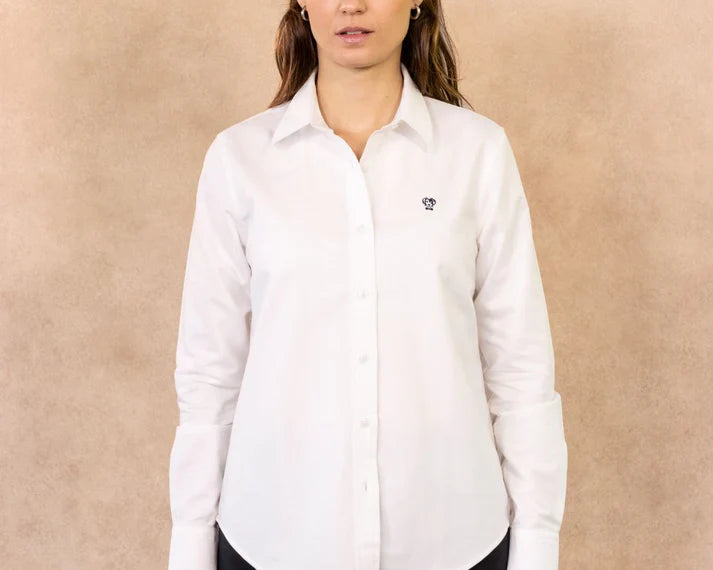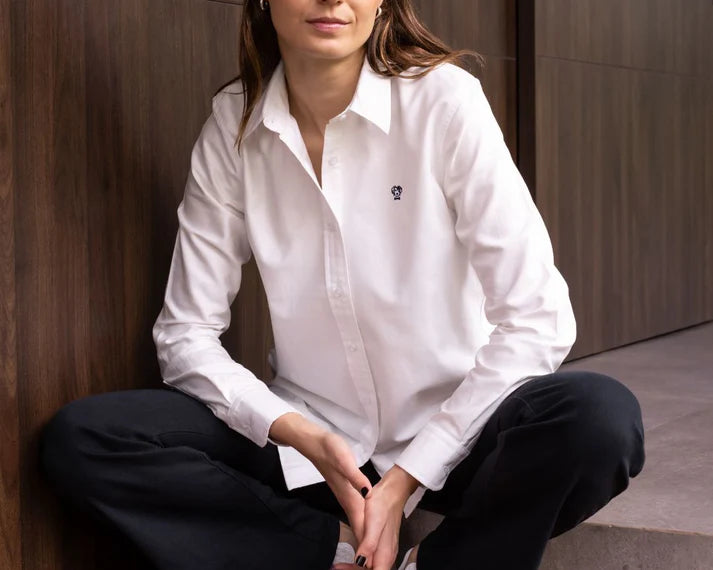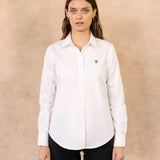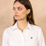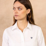 Camisa Antimanchas Oxford de Mujer Blanca Logo Azul Oscuro