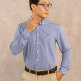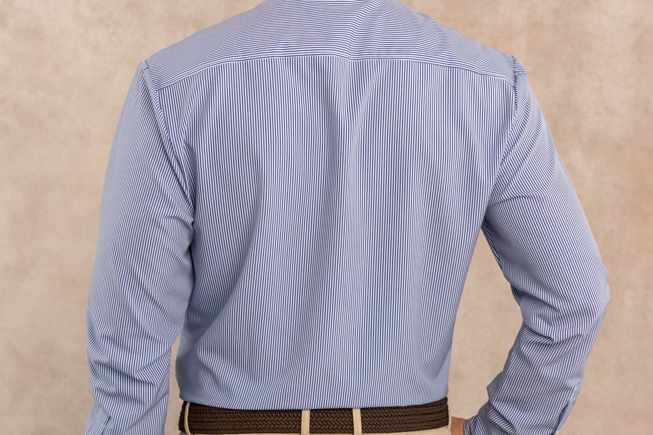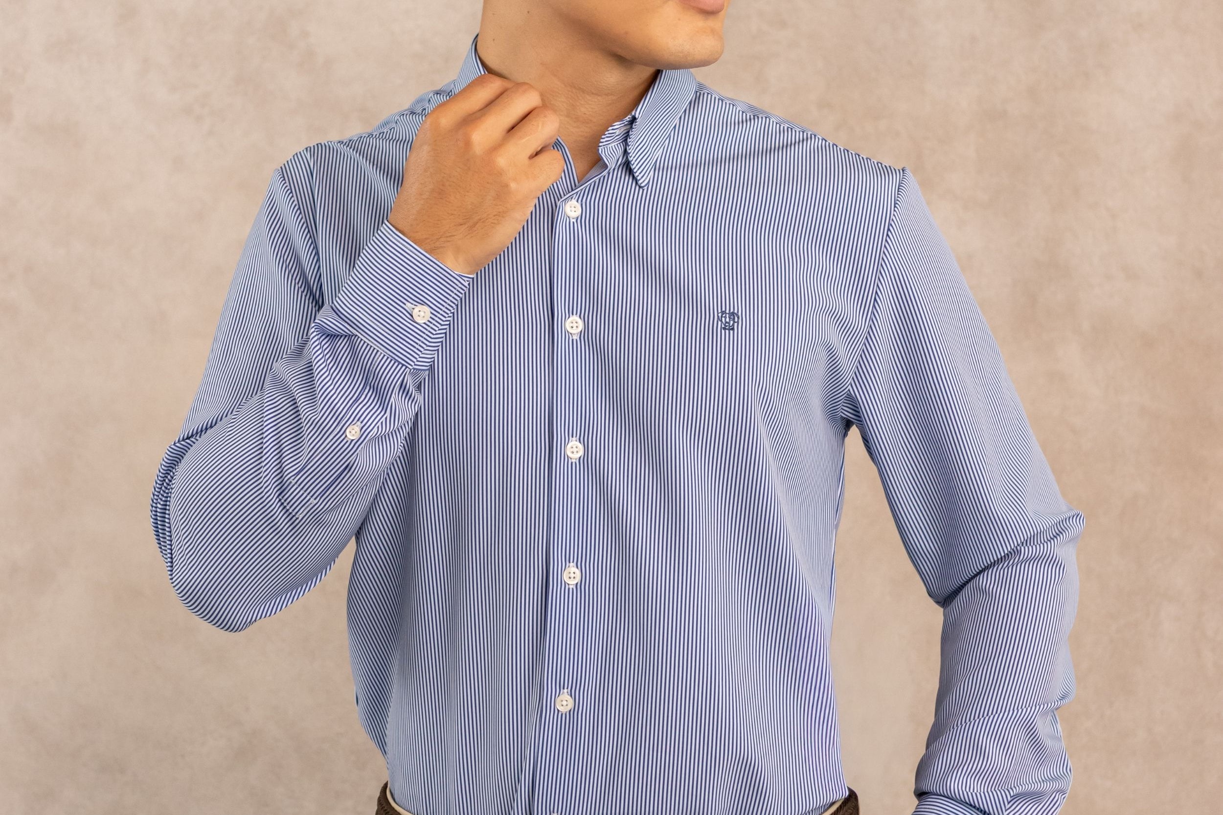 Camisa Performance Antiarrugas Rayas Azul Oscuro